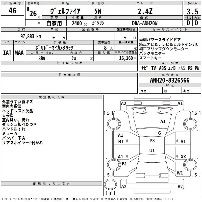 | 2.4Z GOLDEN EYES II | DBA-ANH25W | 2AZ-FE | Full-time 4WD | CVT | 2362cc | 170ps(125kW)/6000rpm | AИ-92 | 3 989 829 | |