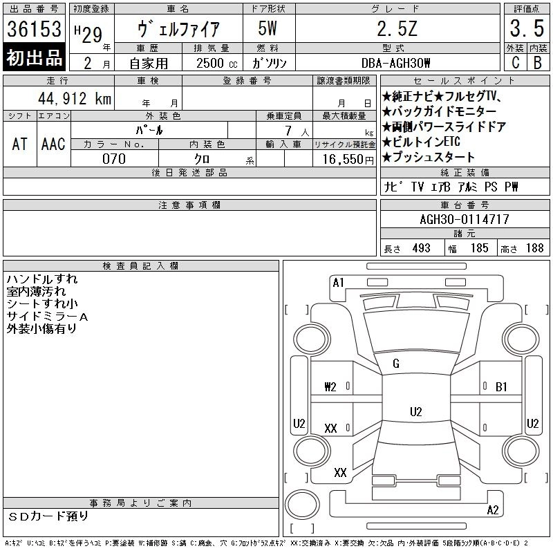 TOYOTA VELLFIRE 2017 г., лот № 36153