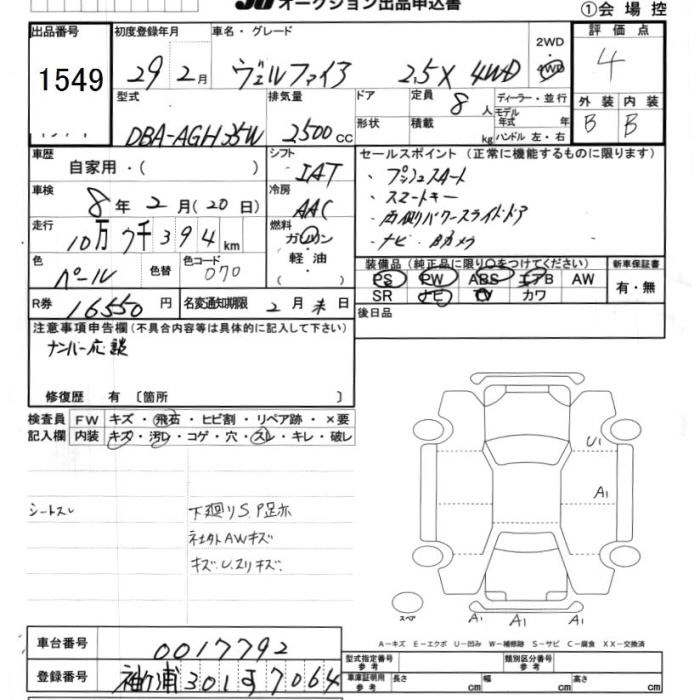 TOYOTA VELLFIRE 2017 г., лот № 1549