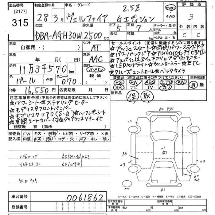 | 2.5Z A EDITION GOLDEN EYES | DBA-AGH35W | 2AR-FE | Full-time 4WD | CVT | 2493cc | 182ps(134kW)/6000rpm | AИ-92 | 4 176 655 | |
