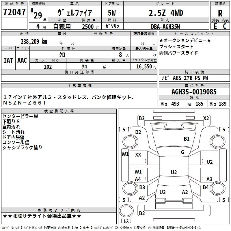 TOYOTA VELLFIRE 2017 г., лот № 72047