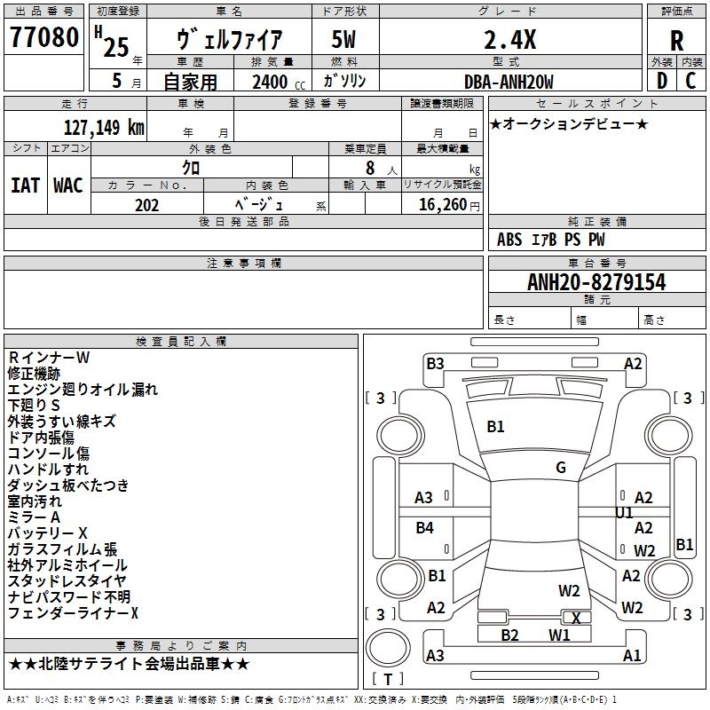 TOYOTA VELLFIRE 2013 г., лот № 77080