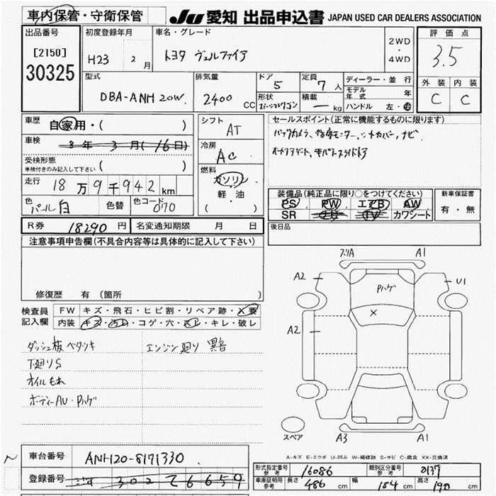 | 2.4Z PLATINUM SELECTION II TYPE GOLD II | DBA-ANH20W | 2AZ-FE | FF | CVT | 2362cc | 170ps(125kW)/6000rpm | AИ-92 | 3 560 000 |