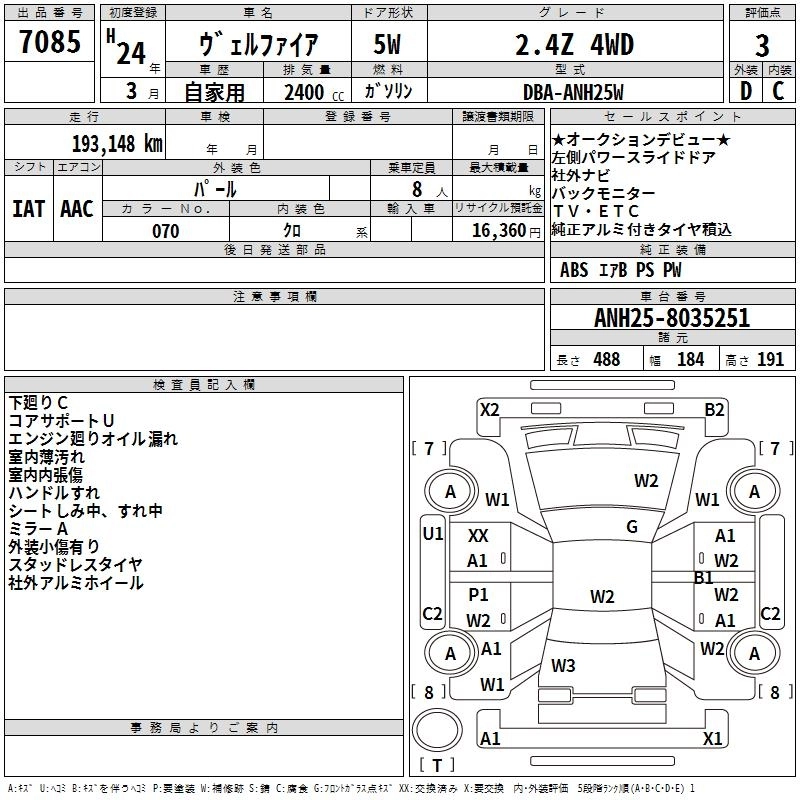 | 2.4Z GOLDEN EYES | DBA-ANH25W | 2AZ-FE | Full-time 4WD | CVT | 2362cc | 170ps(125kW)/6000rpm | AИ-92 | 3 859 000 | |