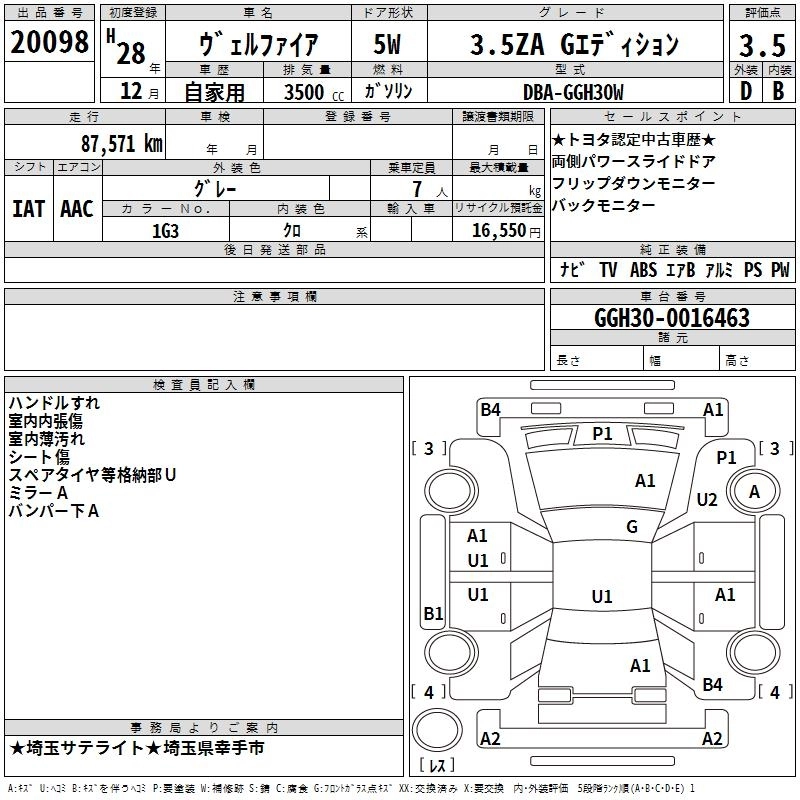 | 3.5ZA GOLDEN EYES | DBA-GGH35W | 2GR-FE | Full-time 4WD | 6AT | 3456cc | 280ps(206kW)/6200rpm | AИ-95 | 4 511 455 | |