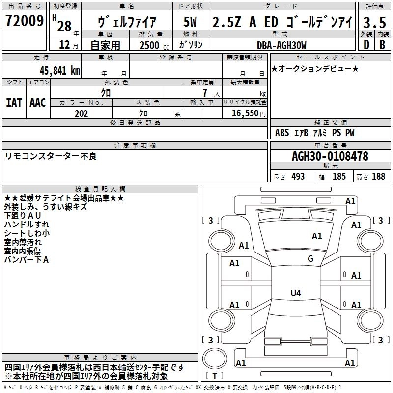 | 3.5ZA GOLDEN EYES | DBA-GGH35W | 2GR-FE | Full-time 4WD | 6AT | 3456cc | 280ps(206kW)/6200rpm | AИ-95 | 4 511 455 | |