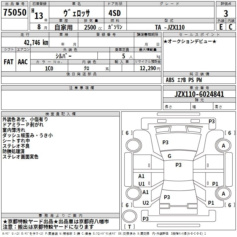 | VR25 | GH-JZX110 | 1JZ-GTE | FR | 5MT | 2491cc | 280ps(206kW)/6200rpm | AИ-95 | 3 340 000 | |