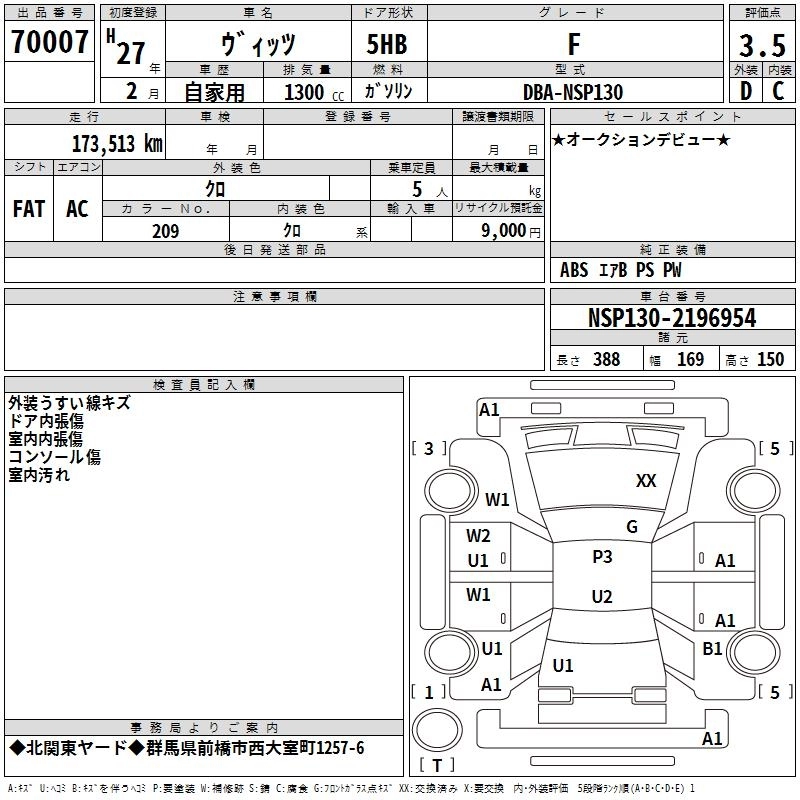 RS GS DBA-NCP131 1NZ-FE FF 5MT 1496cc 109ps(80kW)/6000rpm AИ-92 2 096 182