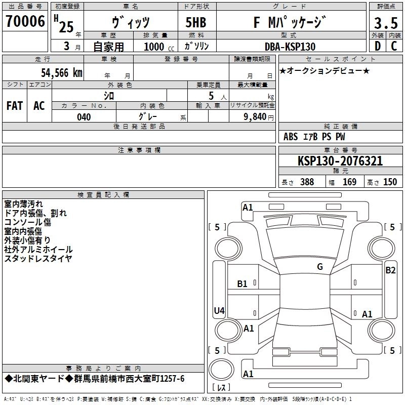 TOYOTA VITZ 2013 г., лот № 70006