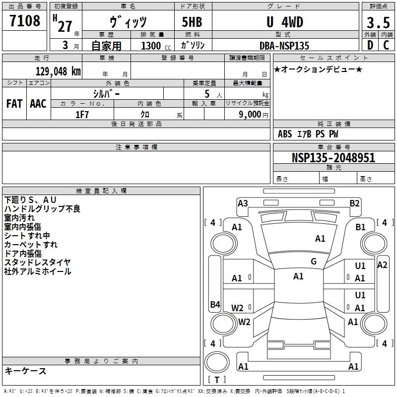 | RS GS | DBA-NCP131 | 1NZ-FE | FF | CVT | 1496cc | 109ps(80kW)/6000rpm | AИ-92 | 2 096 182 | |