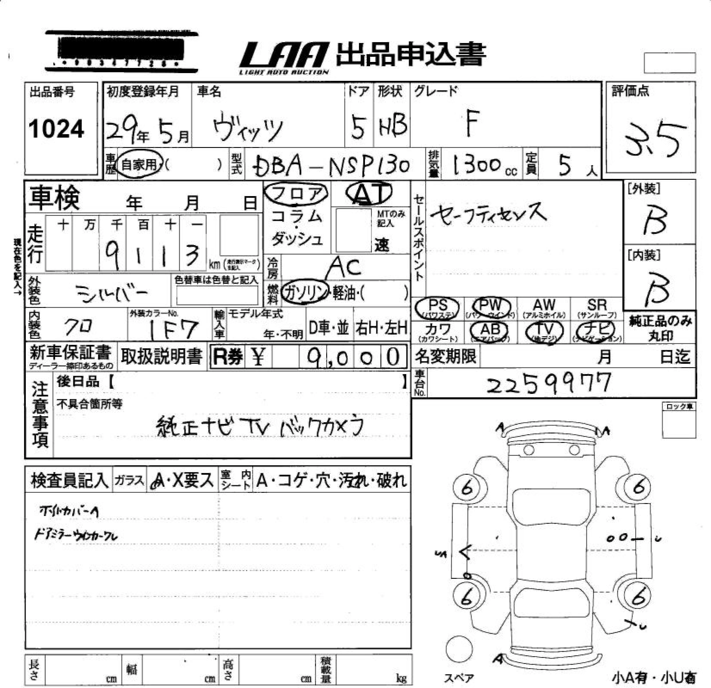 | JEWELA | DBA-NSP130 | 1NR-FKE | FF | CVT | 1329cc | 99ps(73kW)/6000rpm | AИ-92 | 1 703 160 | |