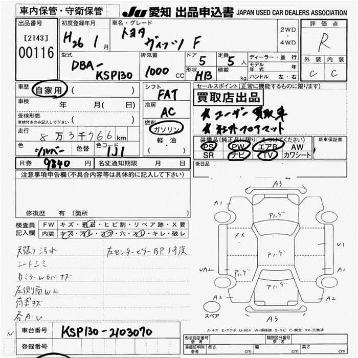| JEWELA | DBA-NSP130 | 1NR-FKE | FF | CVT | 1329cc | 99ps(73kW)/6000rpm | AИ-92 | 1 595 455 | |