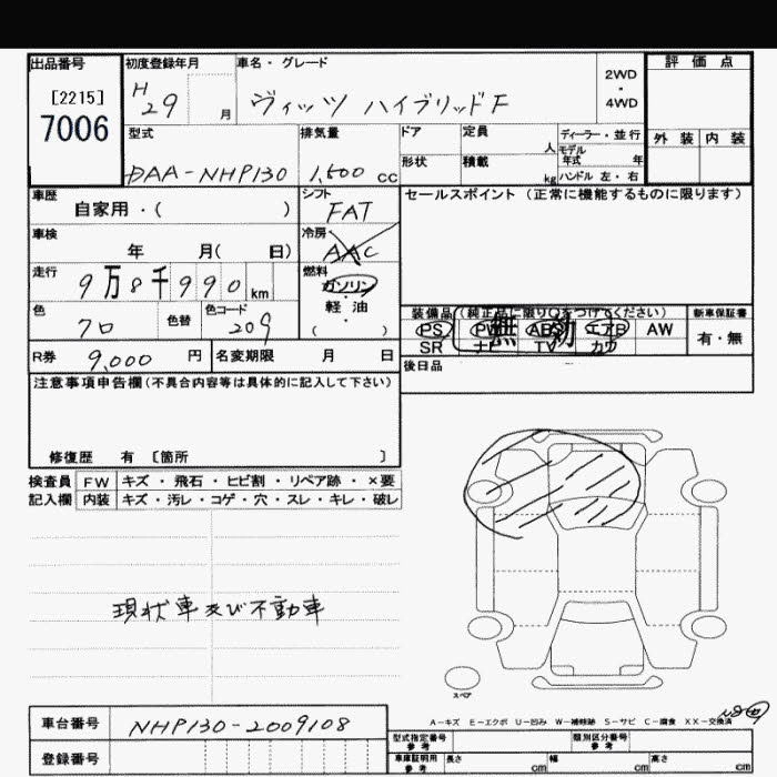 | HYBRID F | DAA-NHP130 | 1NZ-FXE | FF | CVT | 1496cc | 74ps(54kW)/4800rpm | AИ-92 | 1 819 800 | |