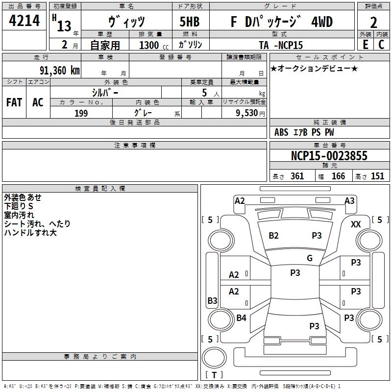 | F | TA-NCP15 | 2NZ-FE | Full-time 4WD | 4AT | 1298cc | 88ps(65kW)/6000rpm | AИ-92 | 1 183 000 | |