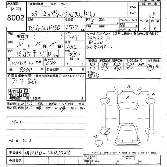 | HYBRID F | DAA-NHP130 | 1NZ-FXE | FF | CVT | 1496cc | 74ps(54kW)/4800rpm | AИ-92 | 1 819 800 | |