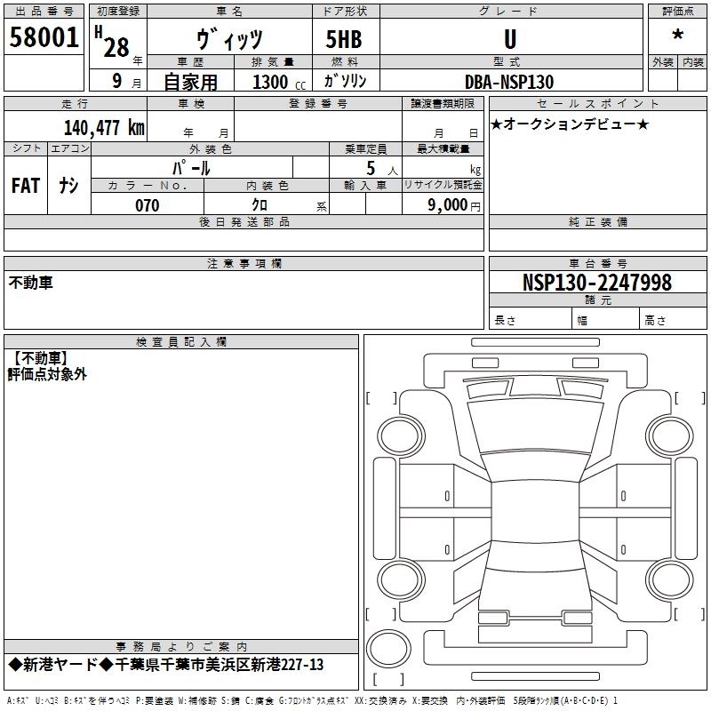 TOYOTA VITZ 2016 г., лот № 58001