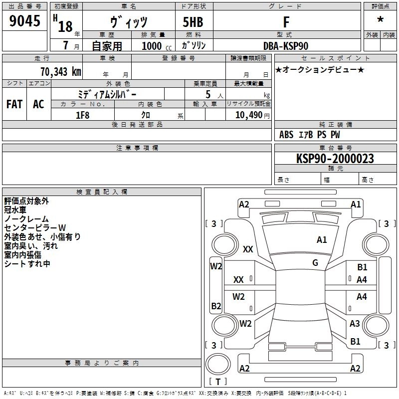 | F ADVANCED EDITION | DBA-KSP90 | 1KR-FE | FF | CVT | 996cc | 71ps(52kW)/6000rpm | AИ-92 | 1 200 000 |