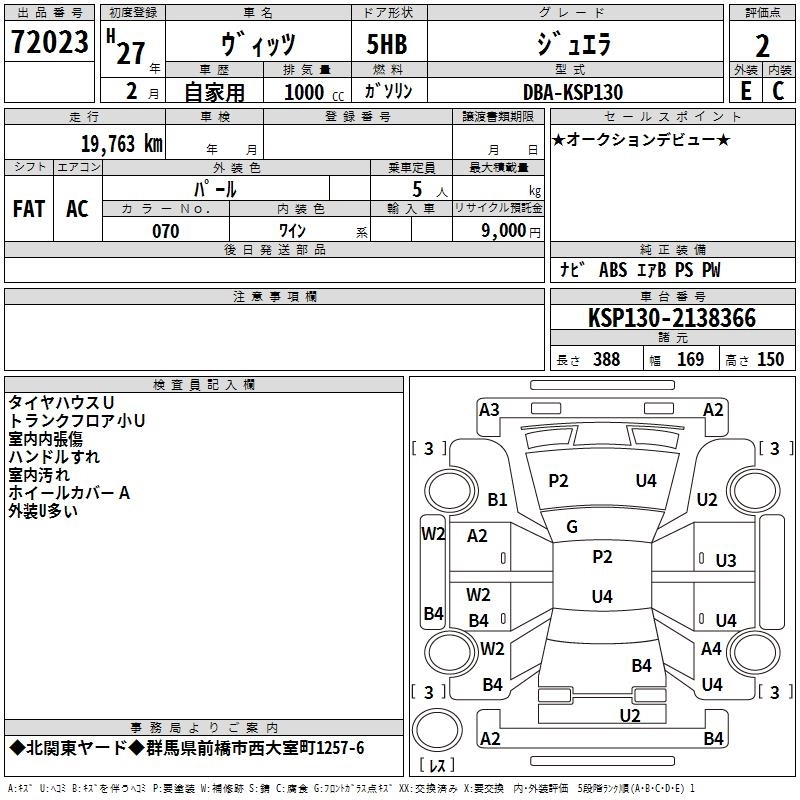 JEWELA DBA-NSP130 1NR-FKE FF CVT 1329cc 99ps(73kW)/6000rpm AИ-92 1 595 455