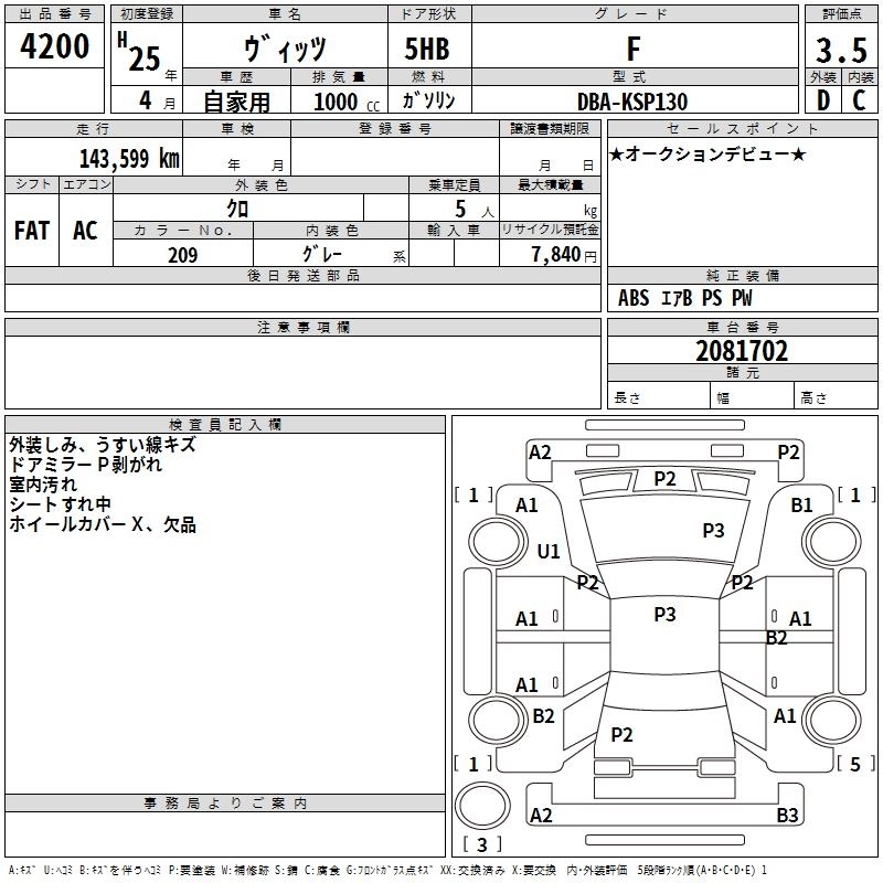 TOYOTA VITZ 2013 г., лот № 4200