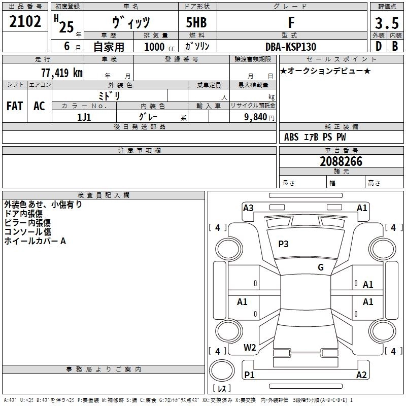 TOYOTA VITZ 2013 г., лот № 2102