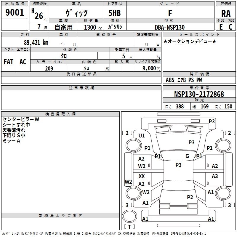 | JEWELA | DBA-NSP130 | 1NR-FKE | FF | CVT | 1329cc | 99ps(73kW)/6000rpm | AИ-92 | 1 595 455 | |