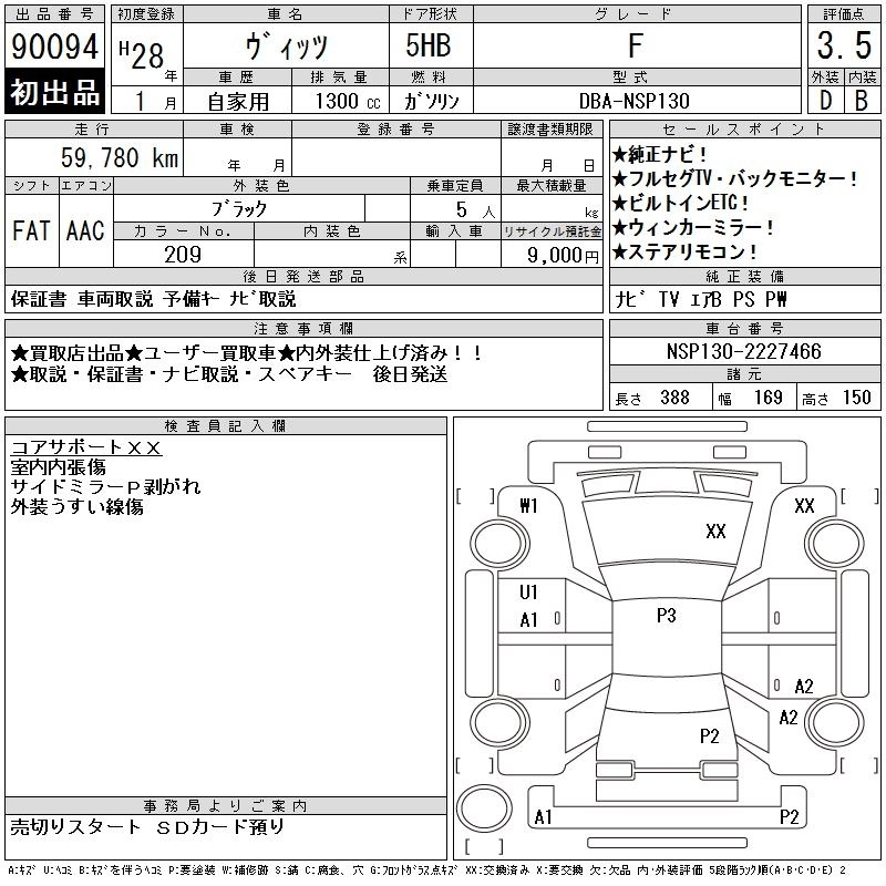 TOYOTA VITZ 2016 г., лот № 90094