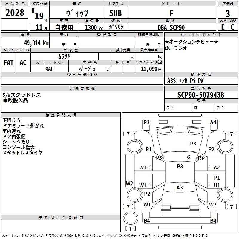| F | DBA-SCP90 | 2SZ-FE | FF | CVT | 1296cc | 87ps(64kW)/6000rpm | AИ-92 | 1 239 000 | |