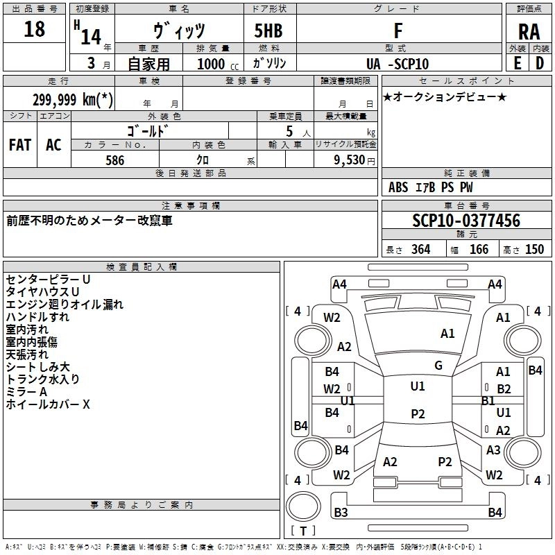 | F | UA-SCP10 | 1SZ-FE | FF | 4AT | 997cc | 70ps(51kW)/6000rpm | AИ-92 | 968 000 | |