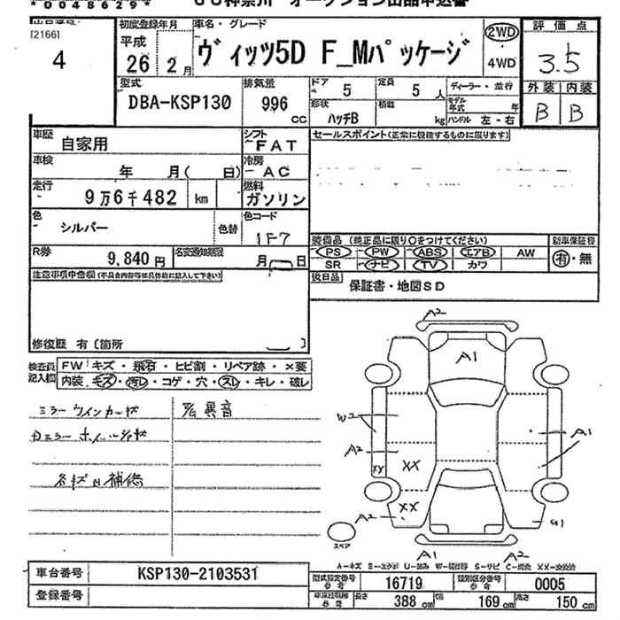 | JEWELA | DBA-NSP130 | 1NR-FKE | FF | CVT | 1329cc | 99ps(73kW)/6000rpm | AИ-92 | 1 595 455 | |