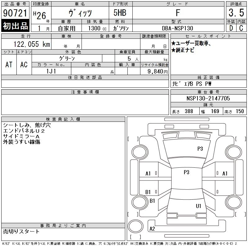 | U | DBA-NCP131 | 1NZ-FE | FF | CVT | 1496cc | 109ps(80kW)/6000rpm | AИ-92 | 1 739 782 | |