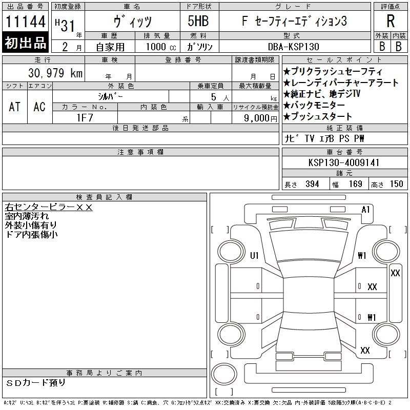 | F SMART STOP PACKAGE | DBA-KSP130 | 1KR-FE | FF | CVT | 996cc | 69ps(51kW)/6000rpm | AИ-92 | 1 431 100 | |