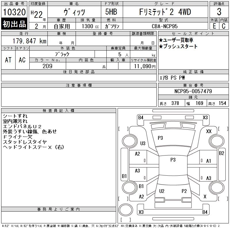 | F | DBA-NSP130 | 1NR-FE | FF | CVT | 1329cc | 95ps(70kW)/6000rpm | AИ-92 | 1 290 000 | |