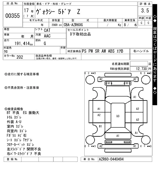 | X | DBA-AZR60G | 1AZ-FSE(D-4) | FF | CVT | 1998cc | 155ps(114kW)/6000rpm | AИ-92 | 2 295 000 | |