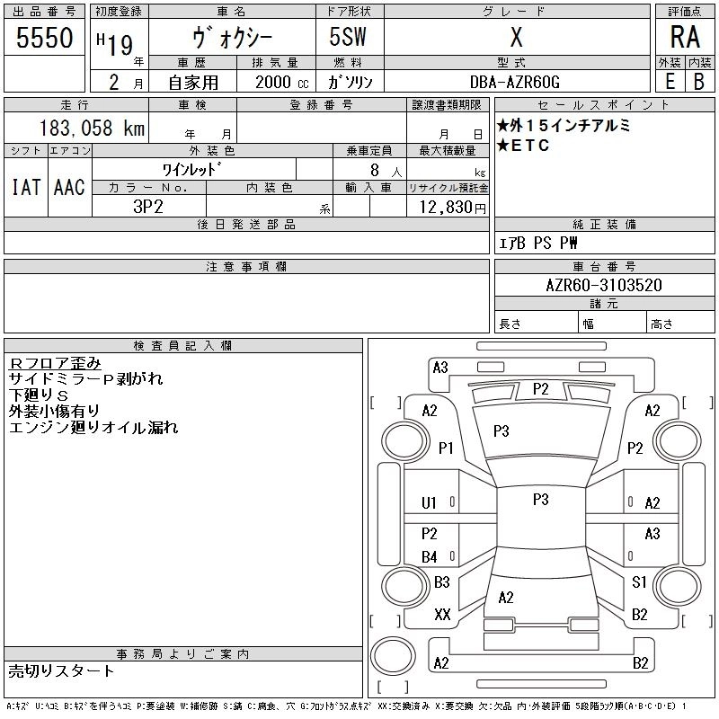 | X | DBA-ZRR70G | 3ZR-FE | FF | CVT | 1986cc | 143ps(105kW)/5600rpm | AИ-92 | 2 037 000 | |