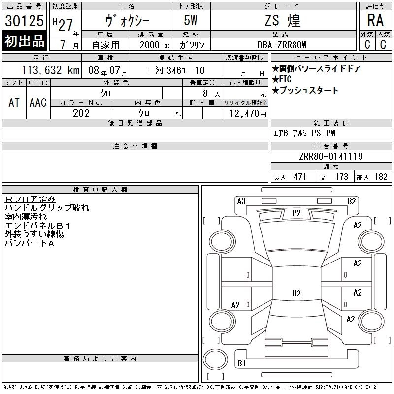 TOYOTA VOXY 2015 г., лот № 30125