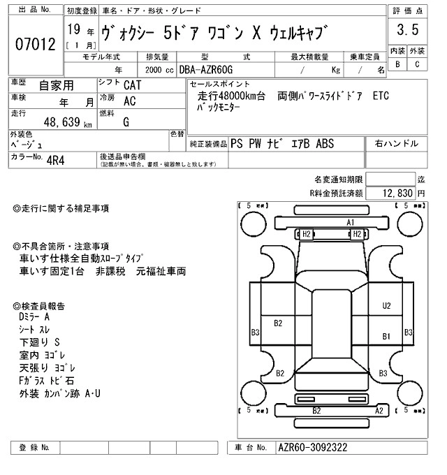 | X | DBA-ZRR70G | 3ZR-FE | FF | CVT | 1986cc | 143ps(105kW)/5600rpm | AИ-92 | 2 037 000 | |