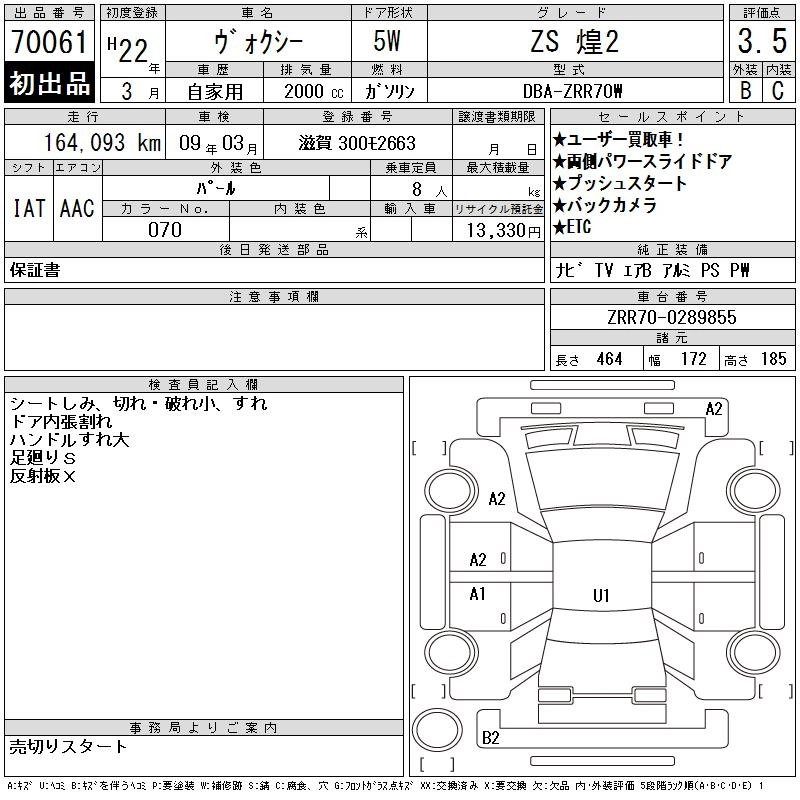 | X | DBA-ZRR70G | 3ZR-FAE | FF | CVT | 1986cc | 158ps(116kW)/6200rpm | AИ-92 | 2 120 000 | |