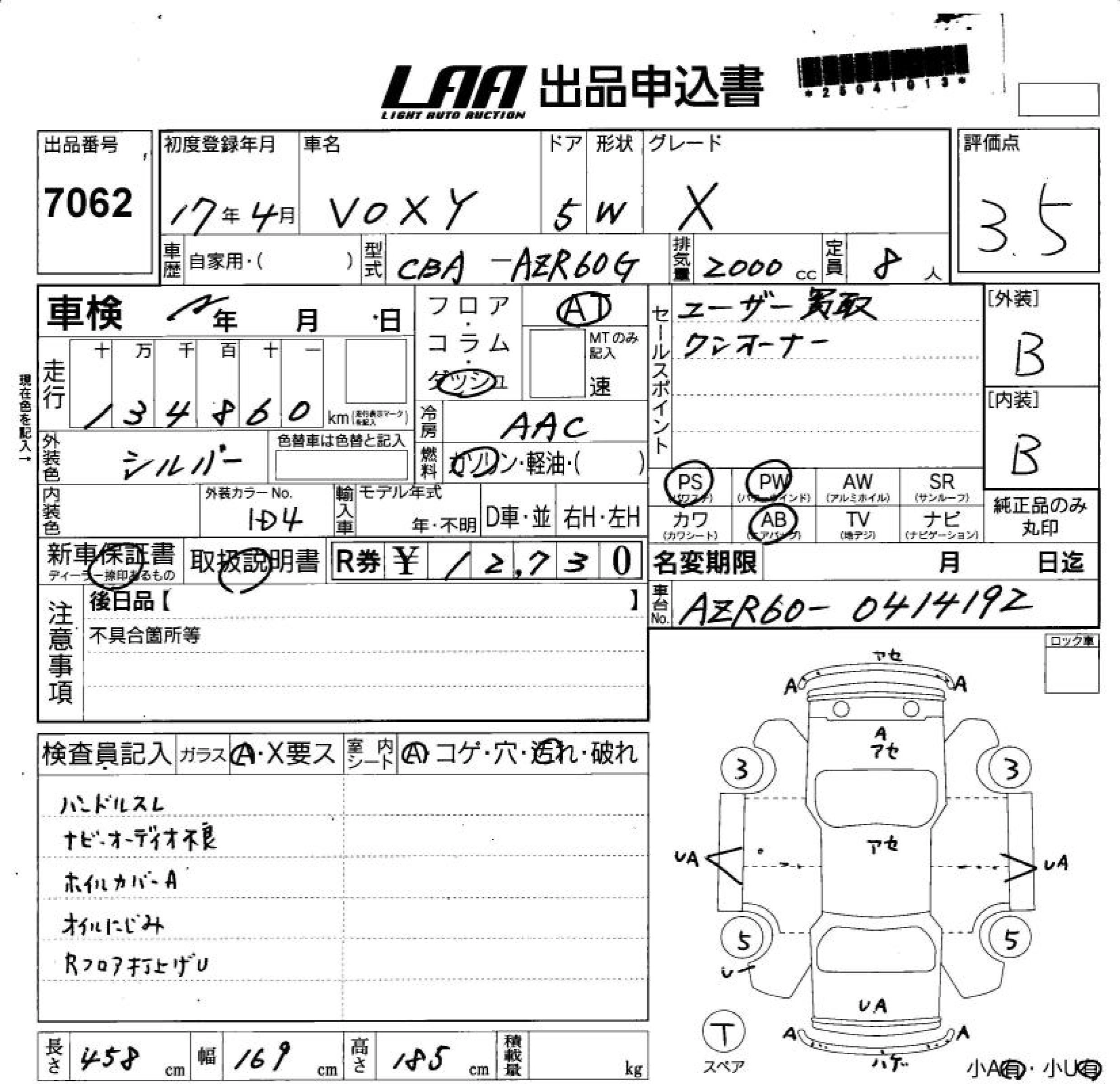 | X | DBA-AZR60G | 1AZ-FSE(D-4) | FF | CVT | 1998cc | 155ps(114kW)/6000rpm | AИ-92 | 2 295 000 | |