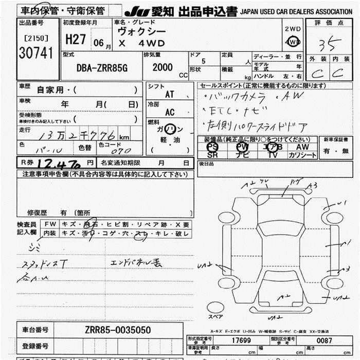 TOYOTA VOXY 2015 г., лот № 30741