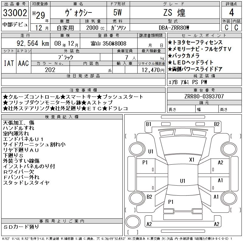 | X | DBA-ZRR80G | 3ZR-FAE | FF | CVT | 1986cc | 152ps(112kW)/6100rpm | AИ-92 | 2 466 720 |