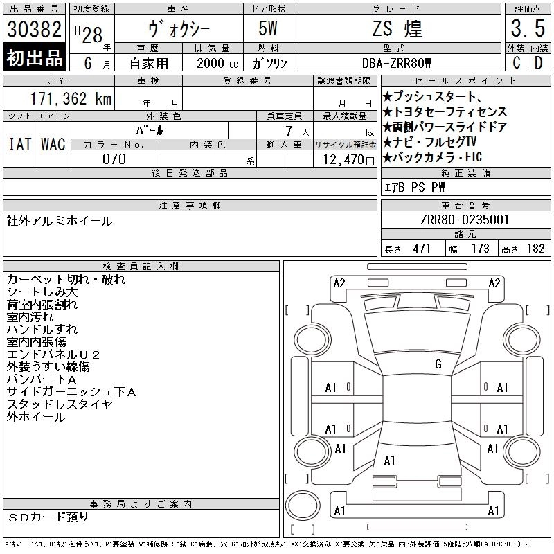 | X | DBA-ZRR80G | 3ZR-FAE | FF | CVT | 1986cc | 152ps(112kW)/6100rpm | AИ-92 | 2 480 073 | |