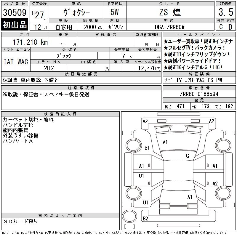 TOYOTA VOXY 2015 г., лот № 30509