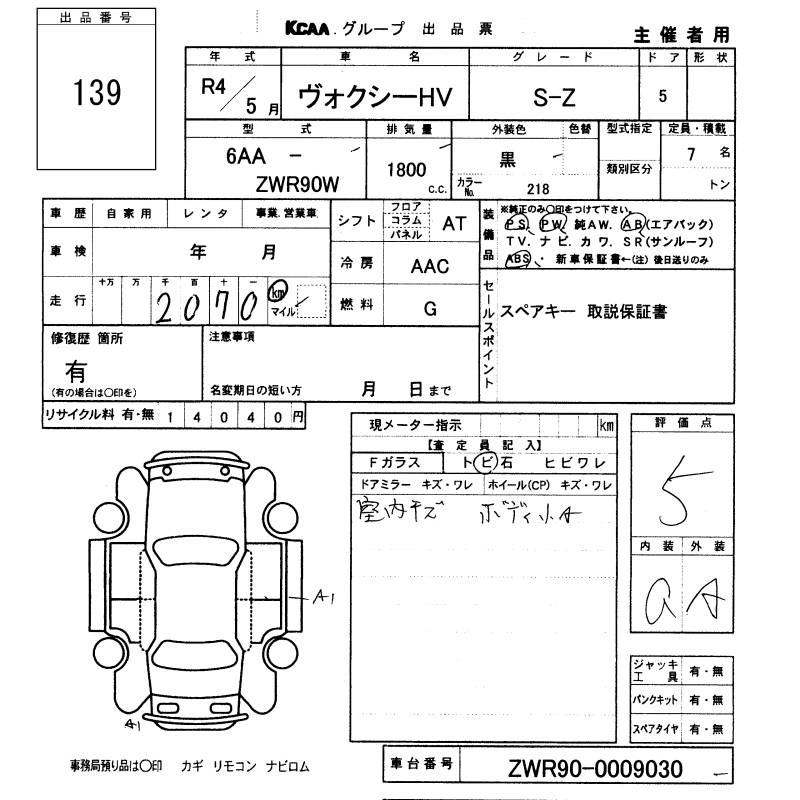 TOYOTA VOXY 2022 г., лот № 139