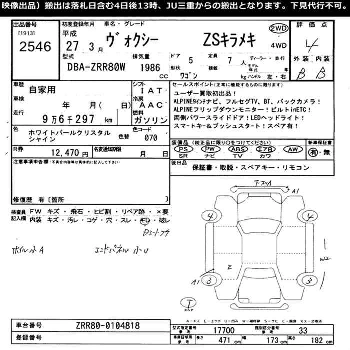 TOYOTA VOXY 2015 г., лот № 2546