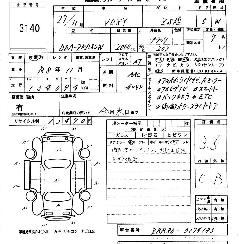 TOYOTA VOXY 2015 г., лот № 3140