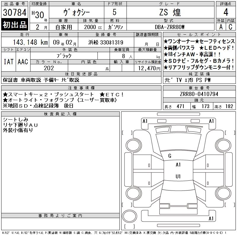 TOYOTA VOXY 2018 г., лот № 30784