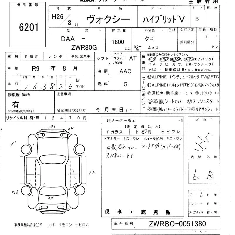 TOYOTA VOXY 2014 г., лот № 6201