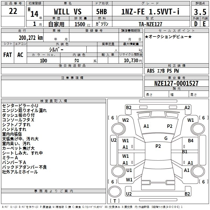 | 1NZ-FE 1.5VVT-I | TA-NZE127 | 1NZ-FE | FF | 4AT | 1496cc | 110ps(81kW)/6000rpm | AИ-92 | 1 498 000 | |