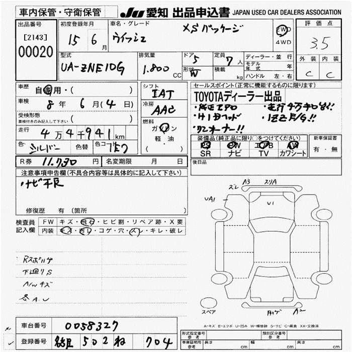 | X S PACKAGE | UA-ZNE14G | 1ZZ-FE | Full-time 4WD | 4AT | 1794cc | 125ps(92kW)/6000rpm | AИ-92 | 2 148 000 | |