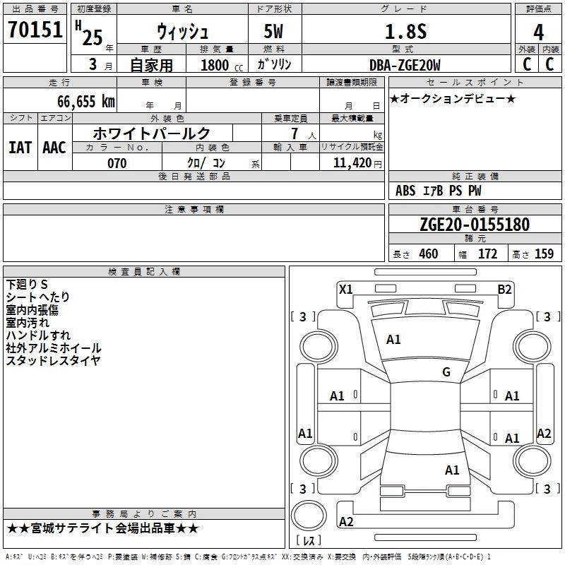 TOYOTA WISH 2013 г., лот № 70151
